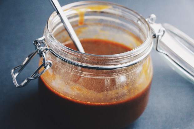 I hope you enjoy it; it takes almost no time at all to make and will keep in the fridge for a day or two. Use as much garlic as you like – I recommend two cloves here but you can amp up the intensity for a stronger flavour.
